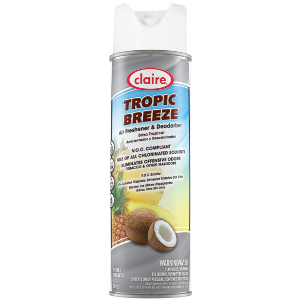Claire® Air Freshener & Deodorizer, 10 oz Aerosol, Tropical Breeze, 12/Case
