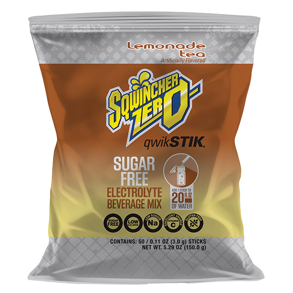 Sqwincher® Qwik Stik® Zero Single Serve, 0.11 oz Packs, 20 oz Yield, Lemonade Tea, 50/Bag