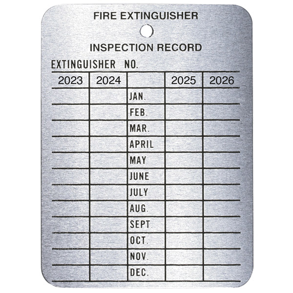 Used to record monthly inspections of fire extinguishers. Features – Start w/ current year – 3″ x 3 1/4″ – 1/Each
