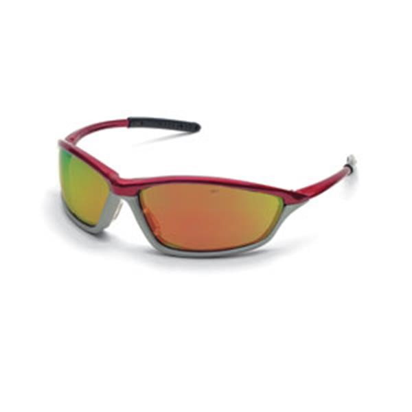 MCR Safety� Shock� Eyewear, Crimson/Stone Frame, Fire Mirror Lens, 1/Each