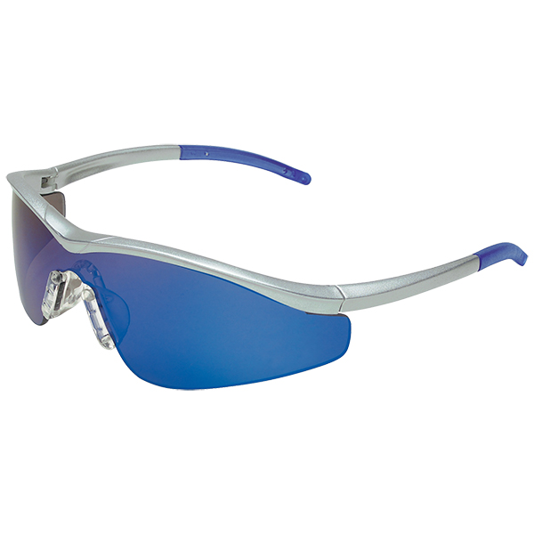 MCR Safety® TI Series Eyewear, Steel Frame, Blue Mirror Lens, 1/Each
